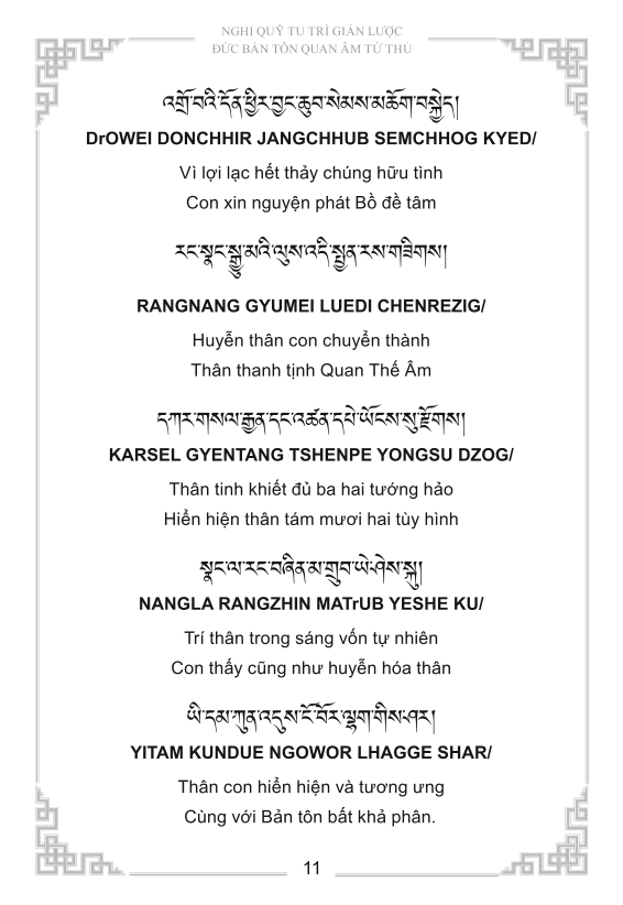 Trong kinh Lăng Nghiêm chính Ngài đã nói rằng “tôi nhớ vô số kiếp như cát sông Hằng về trước có đức Phật ra đời hiện là QUÁN THẾ ÂM NHƯ LAI. Lúc bấy giờ tôi phát bồ đề tâm, trước đại hội Như Lai liền dạy tôi nên từ nơi tam học “Văn, Tư, Tu” mà chứng nhập “Chánh Địa”. Sau cùng Quán Thế Âm Như Lai khen ngợi tôi khéo chứng được pháp môn “Viên thông” và thụ ký cho tôi tên là QUÁN THẾ ÂM, vì tôi nghe tiếng trong mười phương đều được thông suốt.